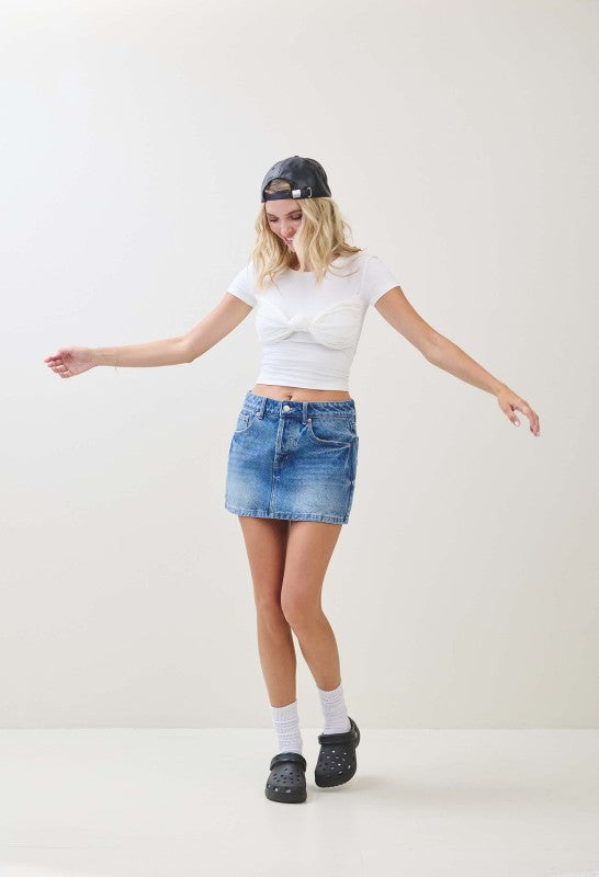Add a fun twist to your wardrobe with this playful cap sleeve top featuring a charming knotted front detail. Its twisted front design adds a flirty flair, perfect for casual days or lively nights out. Comfortable and stylish, this top brings a fresh, spirited vibe to any outfit.